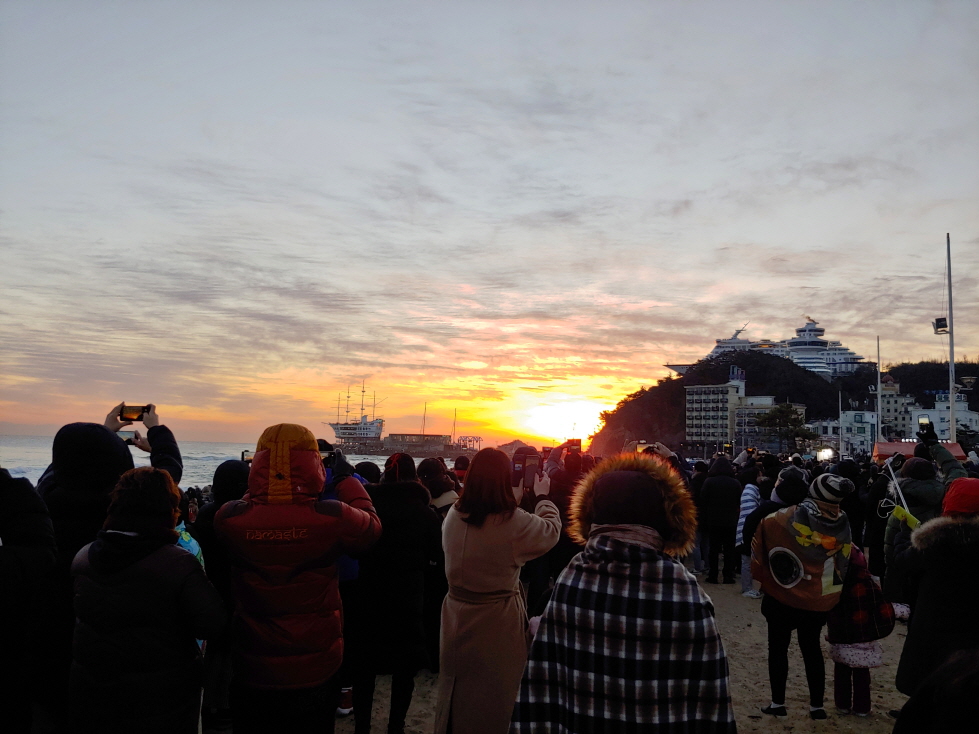 그리고 좀 쉬다보니 7시정도가 되었고 자리에서 일어나 해돋이 장소로 이동하였고 해를 맞이했습니다 하지만 엄청난 사람이 있어서 돌아가는 길도 고생길이였습니다