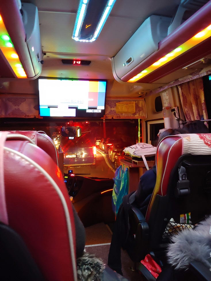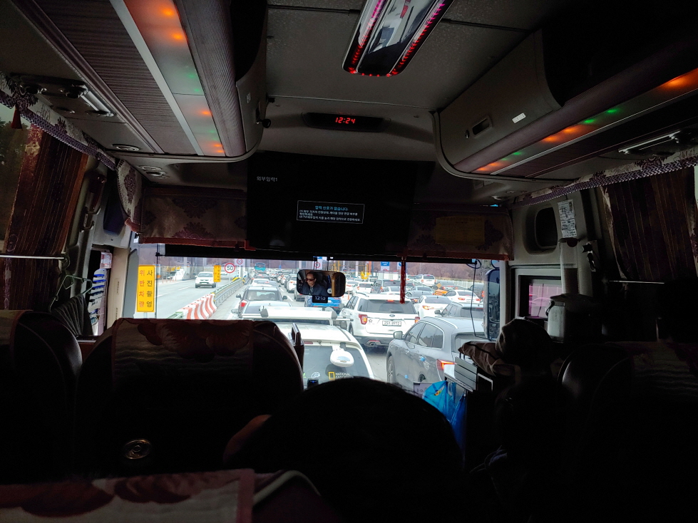 버스는 10시가 되어 출발했는데 저는 출발할때쯤에 잠들었고 한 40분정도 자고 눈을떴는데 아직도 주차장에서 못나가고 있었습니다….엄청났습니다 그래도 이때까지는 그렇구나 하고 다시 잤는데 차는 계속 밀렸고 계속 계속 밀렸습니다
