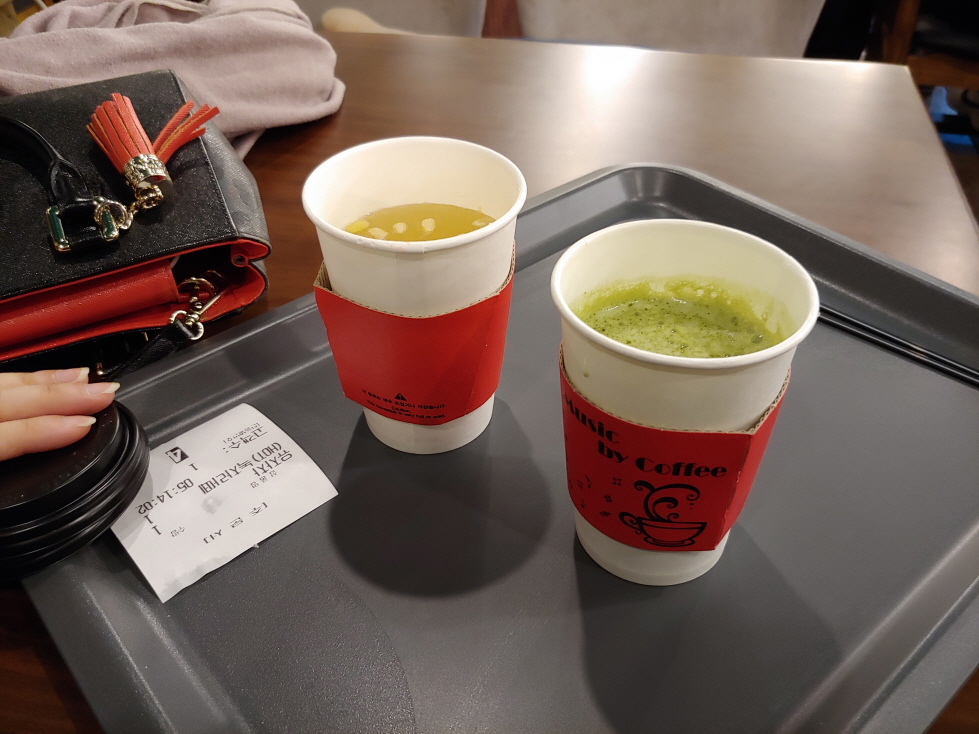 가보니 카페는 작긴했는데 다행히도 자리가 있어서 자리세가 포함된것으로 생각되는 음료 2잔 녹차라때 7천, 유자차8천원을 주문하고 자리에 앉았습니다