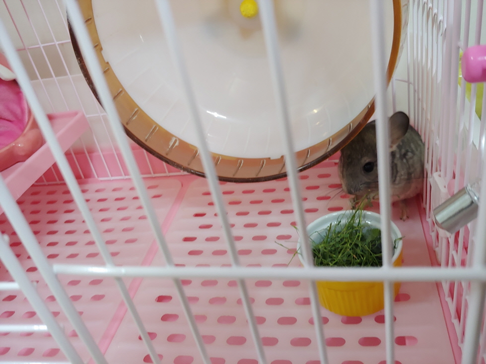 집으로 와서 용품들을 정리하고 셋팅하고 친칠라를 넣었다