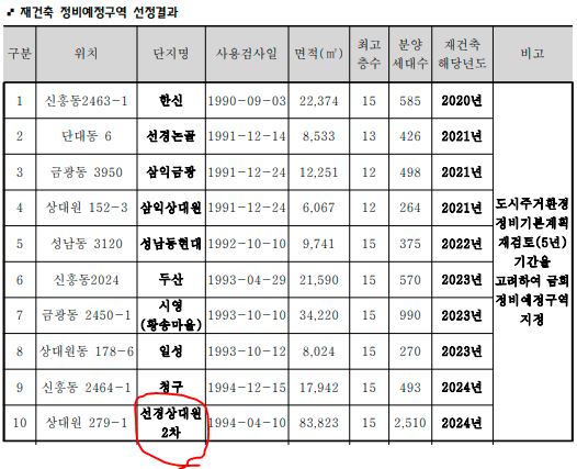 상대원동 선경아파트는 24년도에 재건축 검토할수 있는 최소 년도가 되고 성남시에서 28년도에 재건축 예정으로 지정되어있습니다
