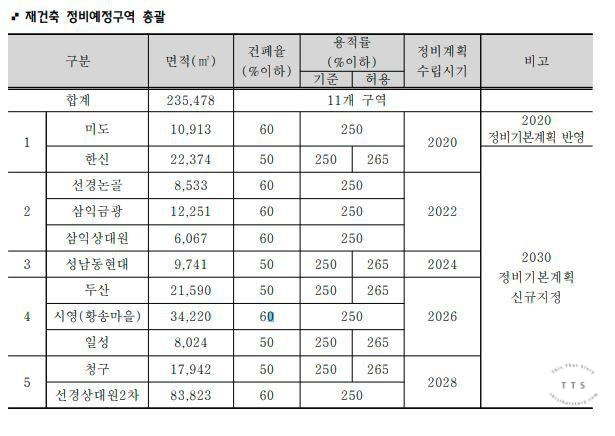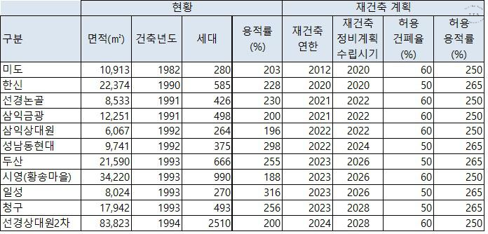 성남 본도심 재건축 현황표(성남시 공식 자료)