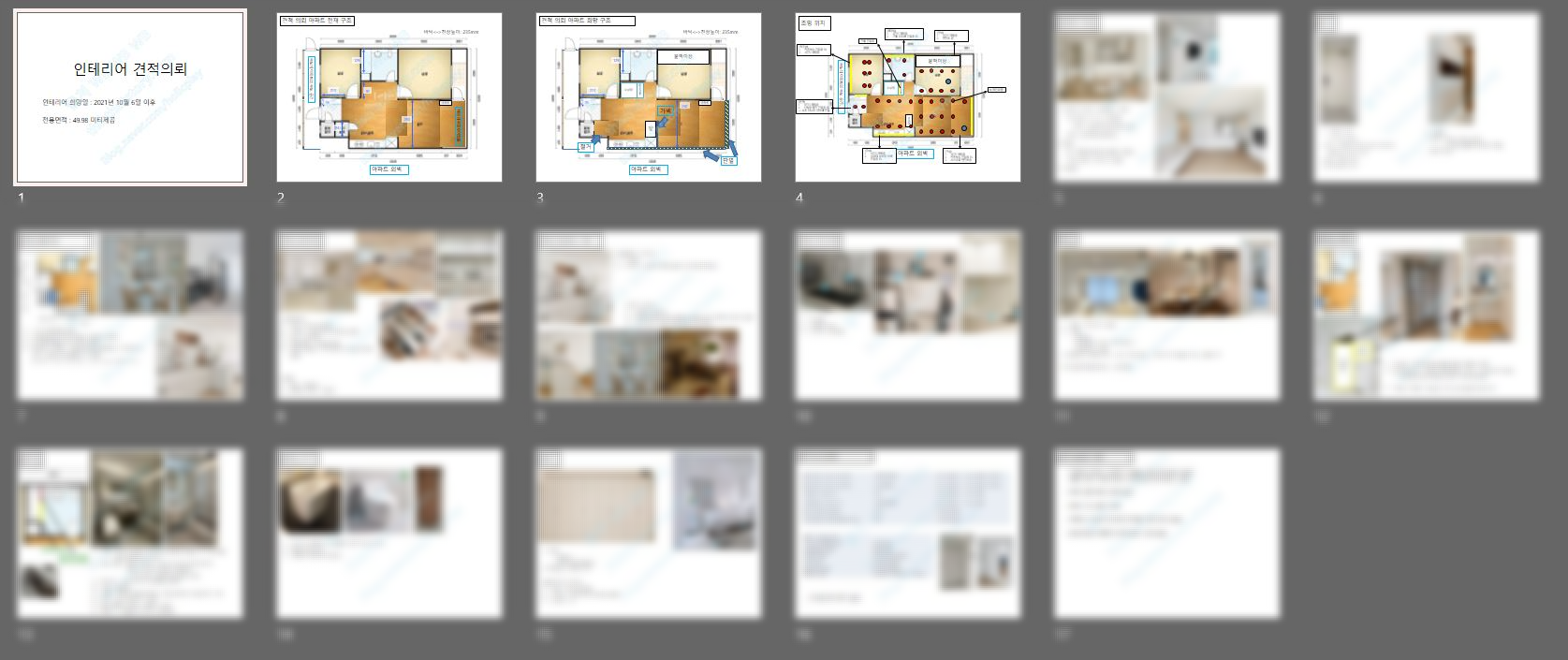 인테리어 업체들은 참고자료가 있어 견적 내기가 수월했다고 말해주었고, 나 또한 비교적 정확한 견적서를 받을 수 있어서 좋았다.