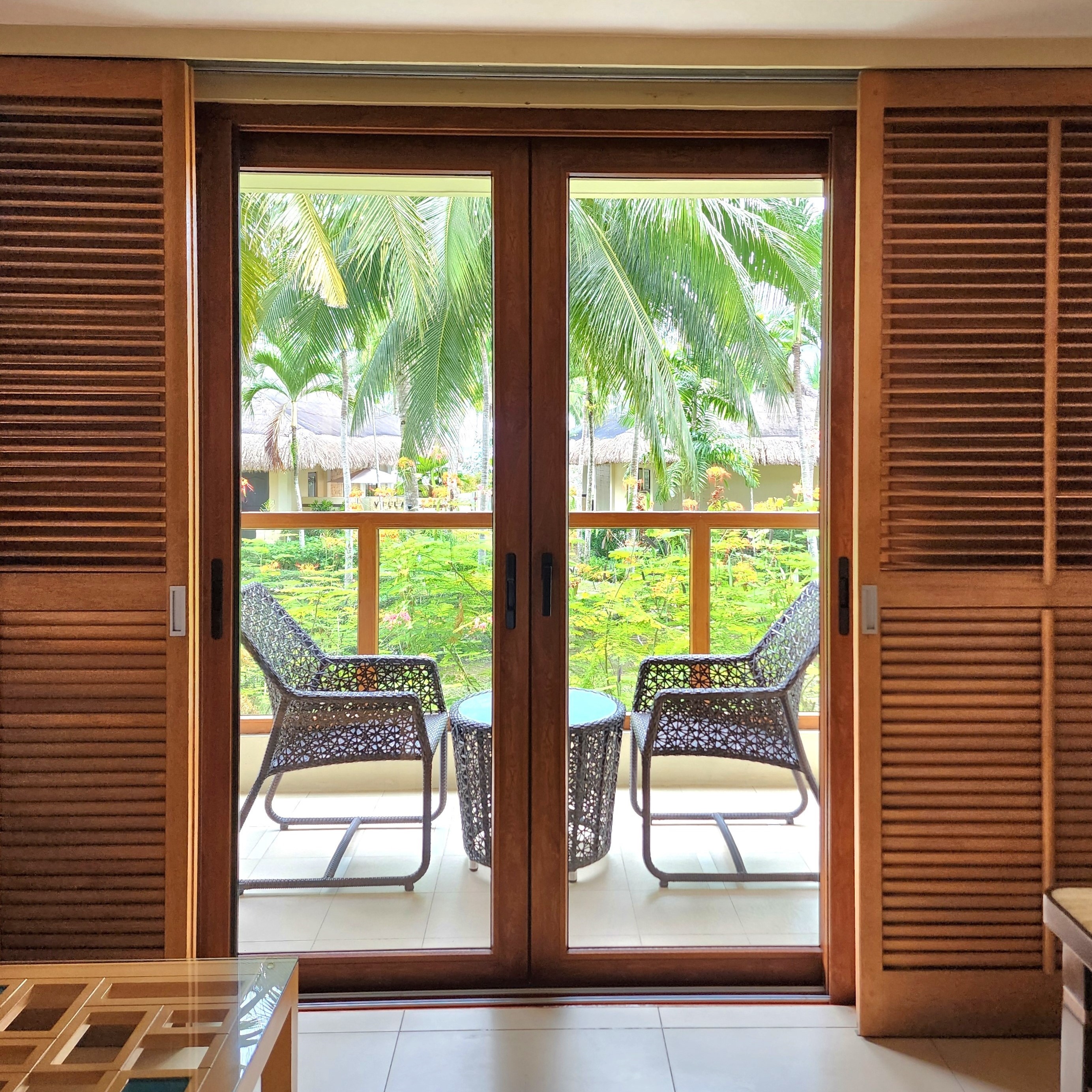 프리미어룸 예약하신 분들은 대부분 풀뷰를 선호하던데 우리는 원래부터 가든뷰를 선호하기도 하고, 얼리체크인도 가능해서 가든뷰를 이용했다. 결론은 너무 마음에 들었다. 멀리 알로나 비치가 보여서 초록과 바다의 조합이 좋았고, 풀빌라 전용공간과 맞닿아있어 일반투숙객은 우리 테라스 앞을 지날 수 없었다. 덕분에 프라이빗하게 테라스도 이용할 수 있었다.